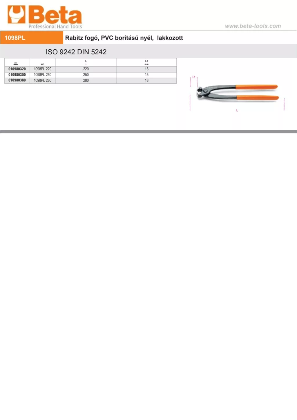 Beta 1098PL 220 Rabitz fogó, PVC borítású nyél, lakkozott