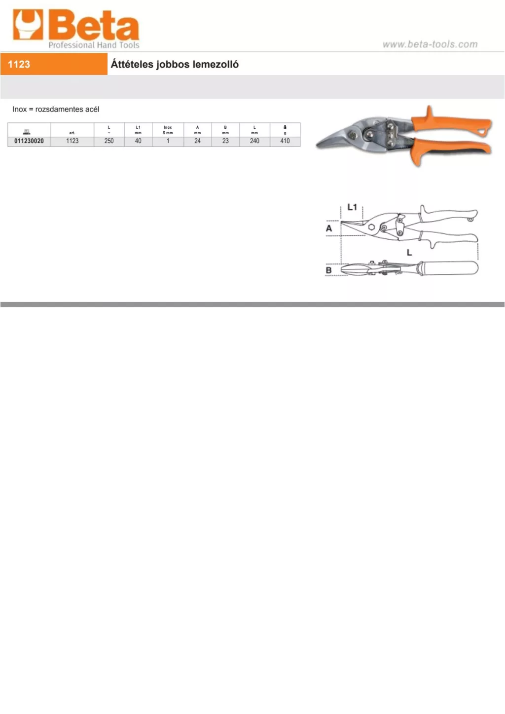 Beta 1123 Áttételes jobbos lemezolló