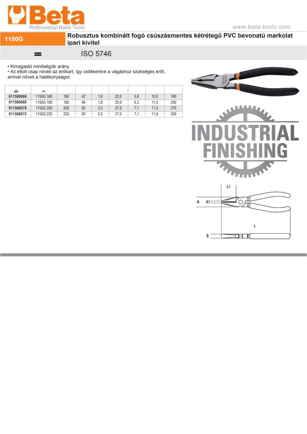 Robusztus kombinált fogó csúszásmentes kétrétegű PVC bevonatú markolat ipari kivitel
