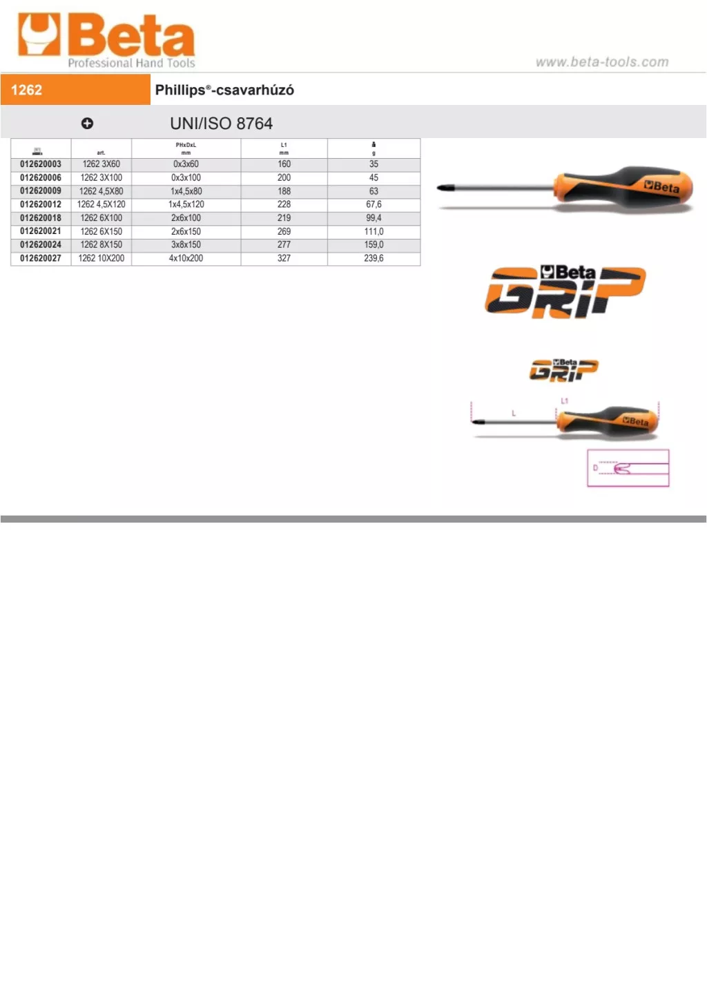 Beta 1262 4,5X120 Phillips®-csavarhúzó PH1x120mm