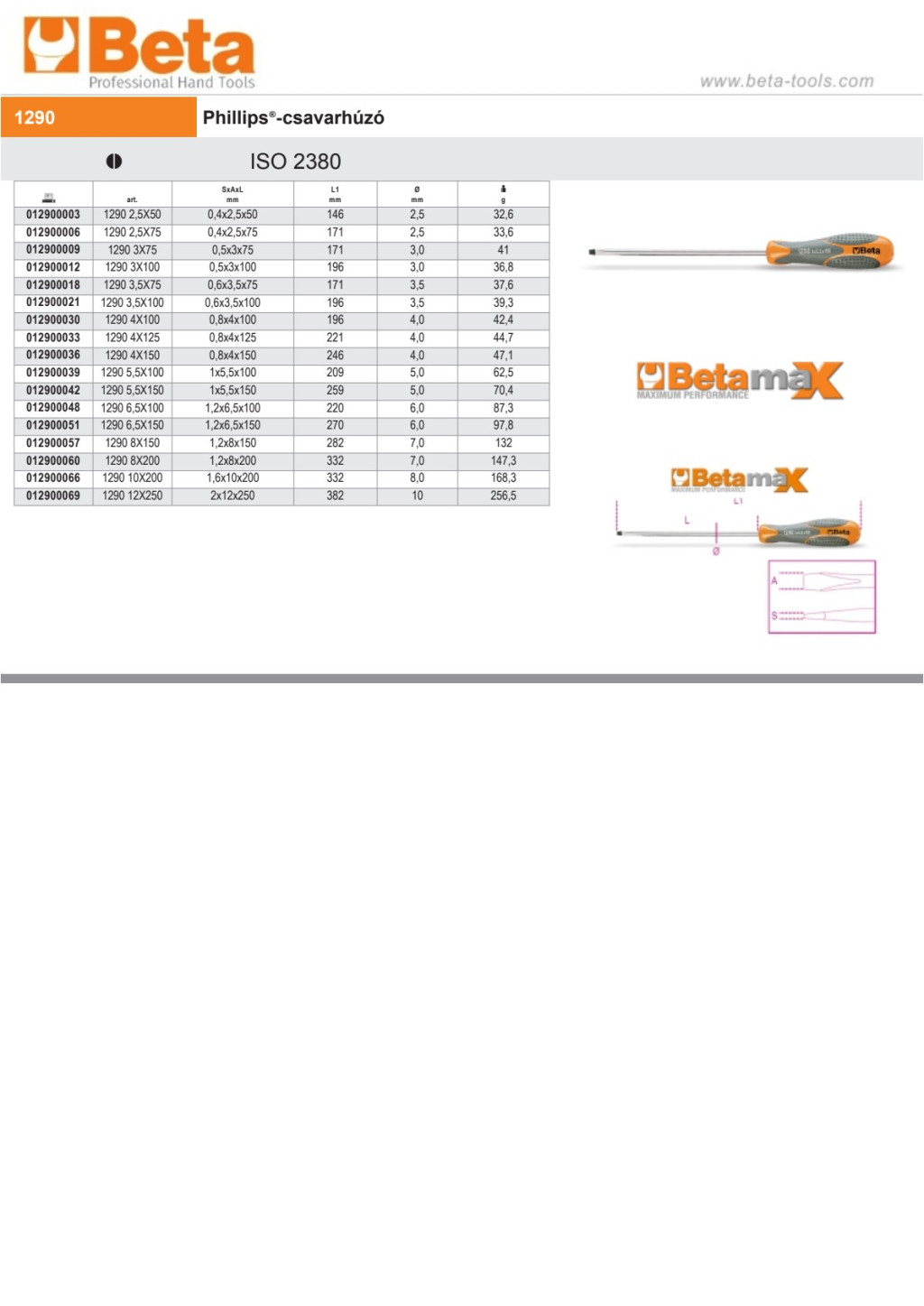 Beta 1290 Csavarhúzó hasítottfejű csavarokhoz 3X100mm