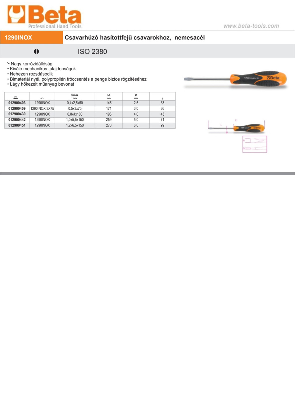 Beta 1290INOX 3X75 Csavarhúzó hasítottfejű csavarokhoz, nemesacél