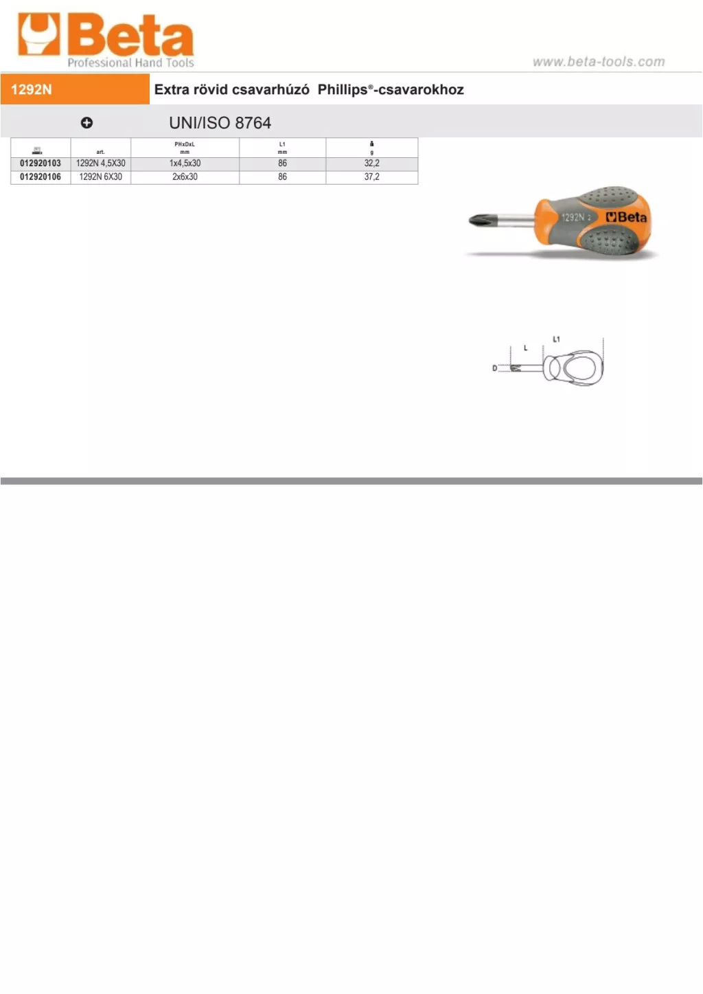 Beta 1292N 6X30 Extra rövid csavarhúzó Phillips®-csavarokhoz PH2x30mm
