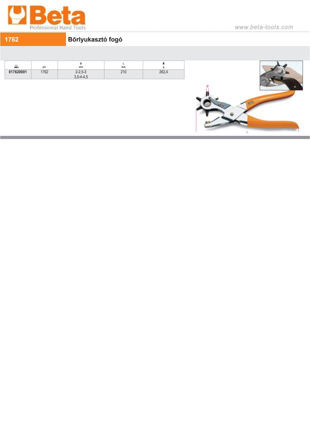 Beta 1762 Bőrlyukasztó fogó