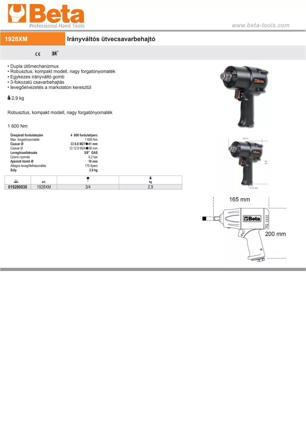 Beta 1928XM Irányváltós ütve csavarbehajtó 3/4"