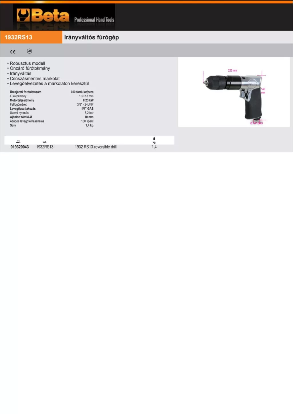 Beta 1932RS13 Irányváltós fúrógép