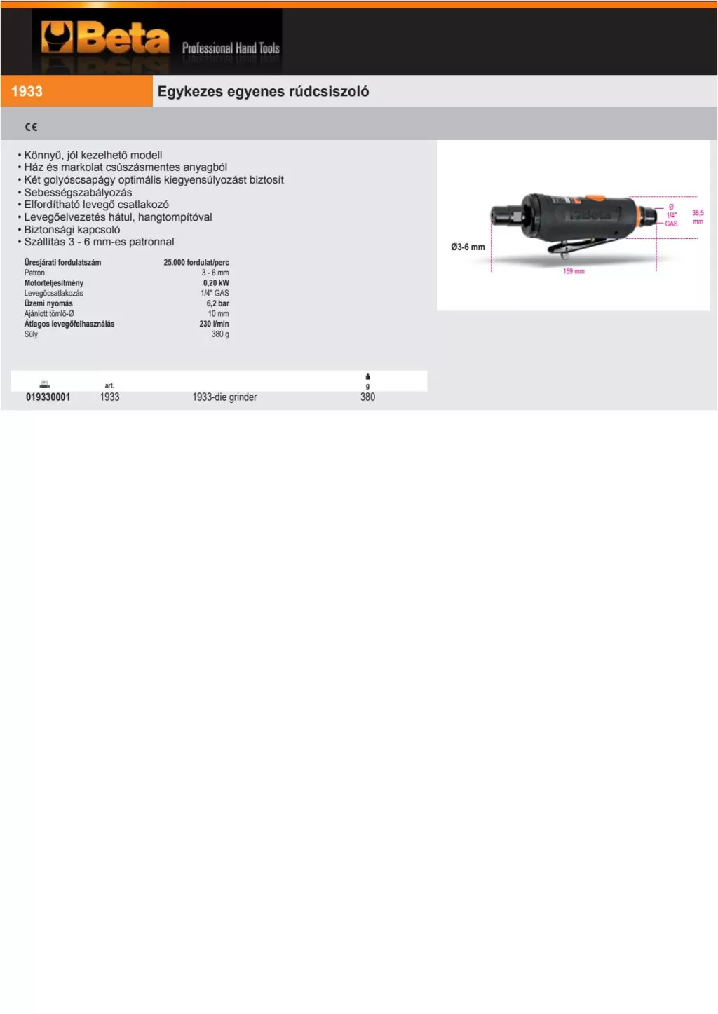 Beta 1933 Egykezes egyenes rúdcsiszoló
