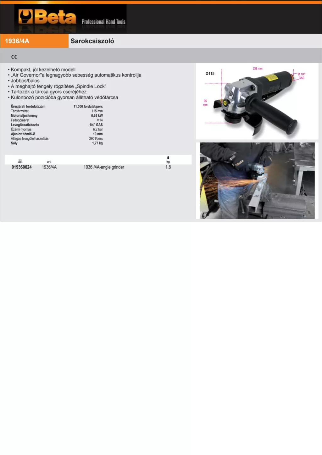 Beta 1936/4A Sarokcsiszoló 115mm