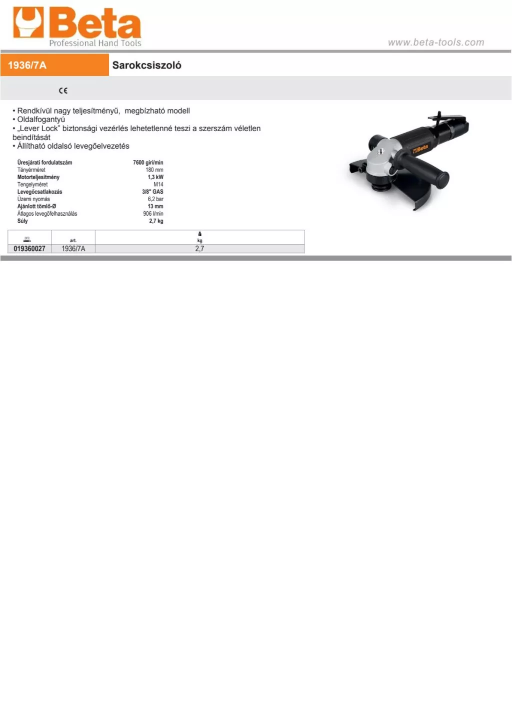 Sarokcsiszoló  • A műszaki paraméterek a melléklet .pdf dokumentumában találhatók.• Rendkívül nagy teljesítményű,  megbízható modell