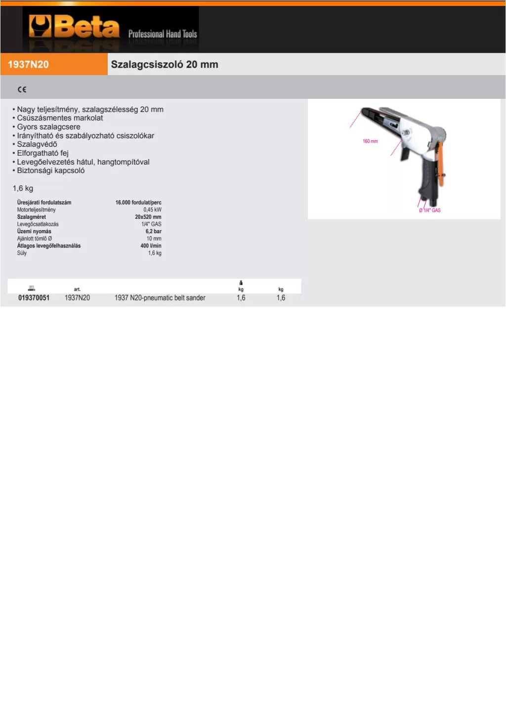 Beta 1937N20 Szalagcsiszológép 20 mm