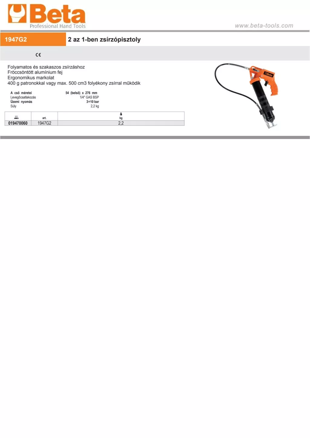 Beta 1947G2 2 az 1-ben zsírzópisztoly