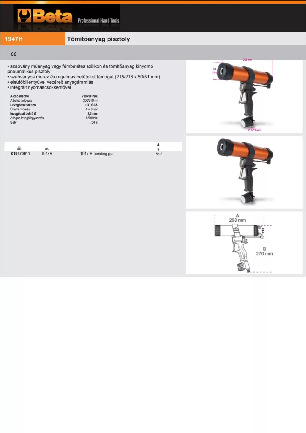• szabvány műanyag vagy fémbetétes szilikon és tömítőanyag kinyomó pneumatikus pisztoly