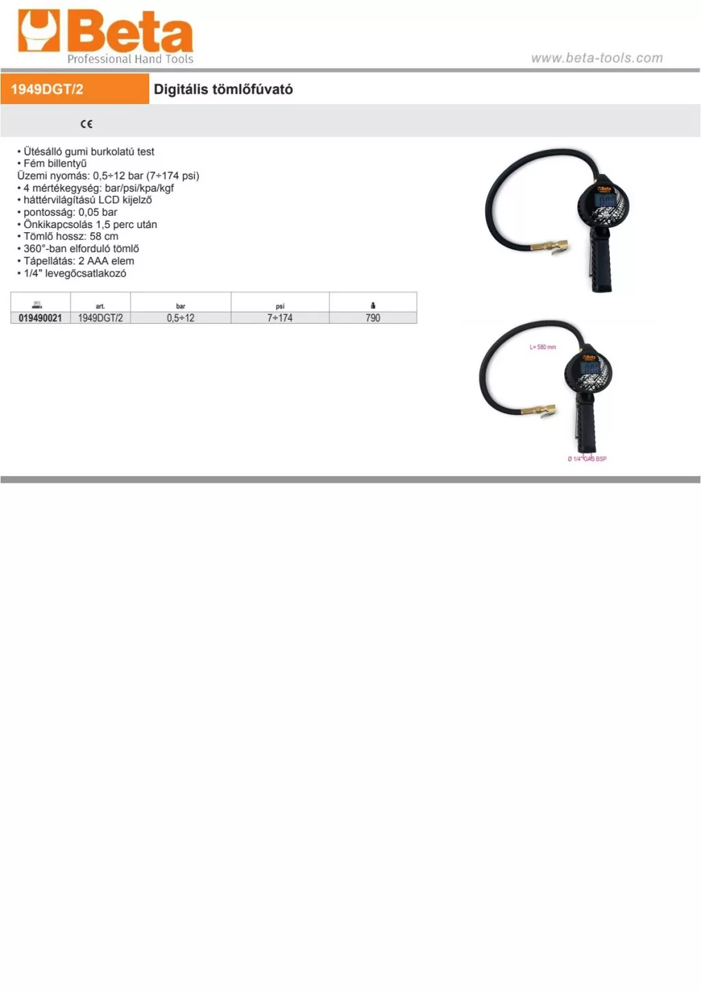 Beta 1949DGT/2 Digitális tömlőfúvató