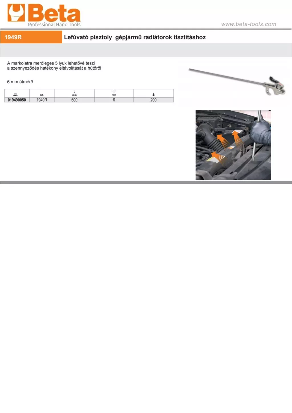 Beta 1949R Lefúvató pisztoly gépjármű radiátorok tisztításhoz