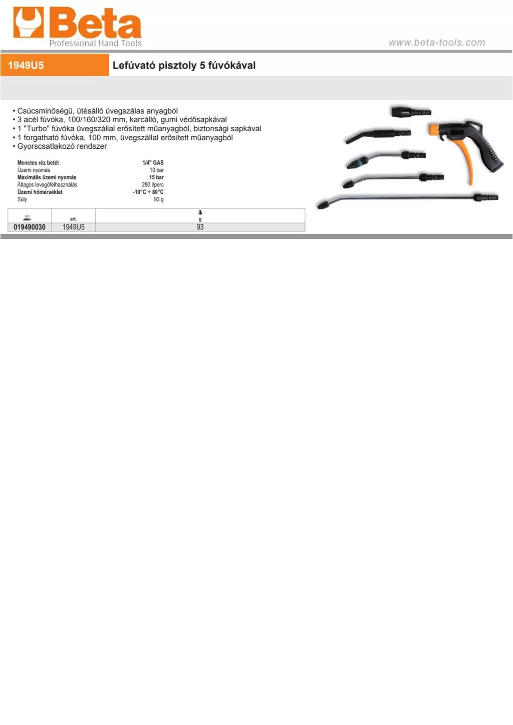Lefúvatópisztoly 5 fúvókával • A műszaki paraméterek a melléklet .pdf dokumentumában találhatók.• Csúcsminőségű, ütésálló üvegszálas anyagból