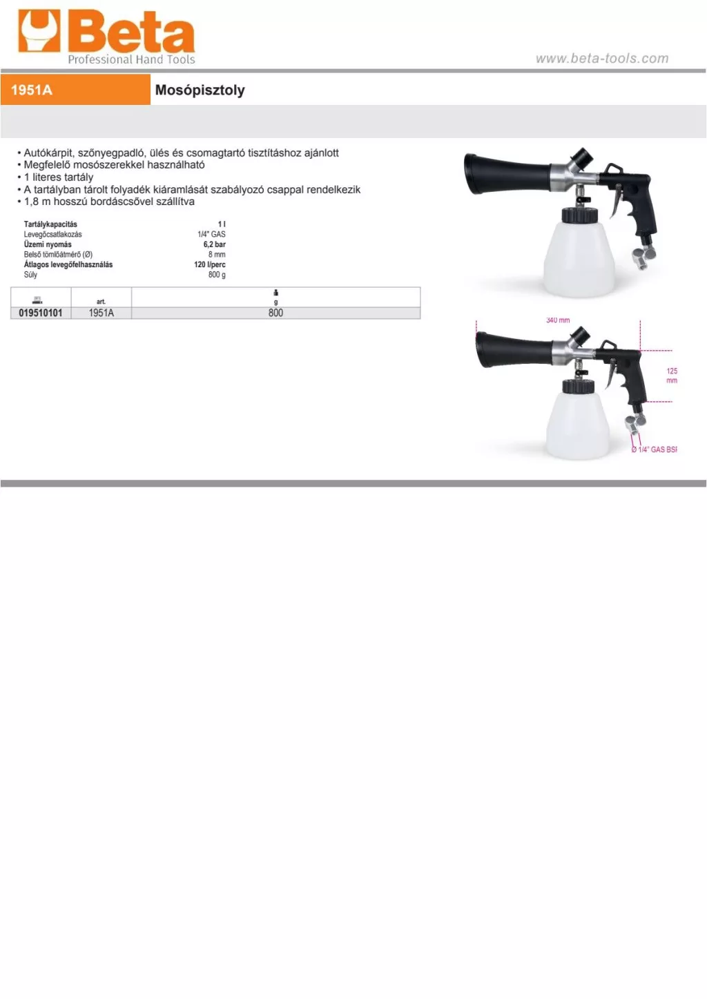 MOSÓPISZTOLY • A műszaki paraméterek a melléklet .pdf dokumentumában találhatók.• Autókárpit, szőnyegpadló, ülés és csomagtartó