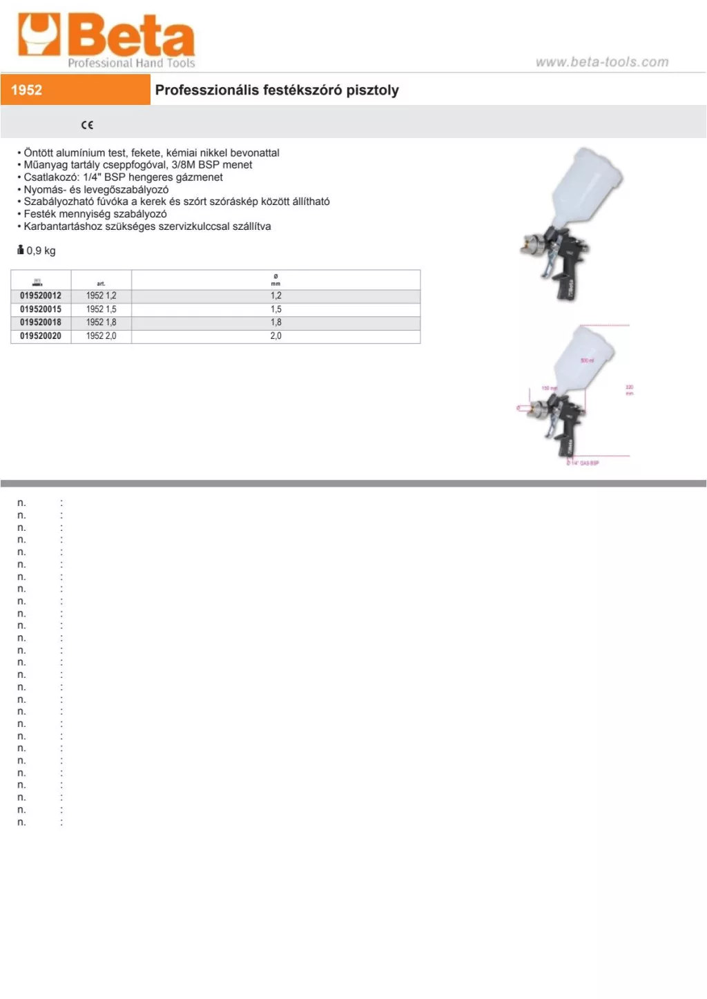 Beta 1952/1,5 PROFESSZIONÁLIS FESTÉKSZÓRÓ PISZTOLY 1,5mm