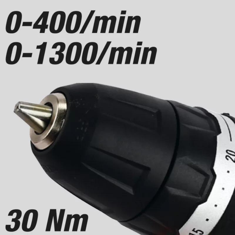 • Legnagyobb nyomaték 30 Nm és 1300 f/p (400 f/p első fokozatban); legnagyobb furatkészítés 10 mm acélban és 20 mm fában