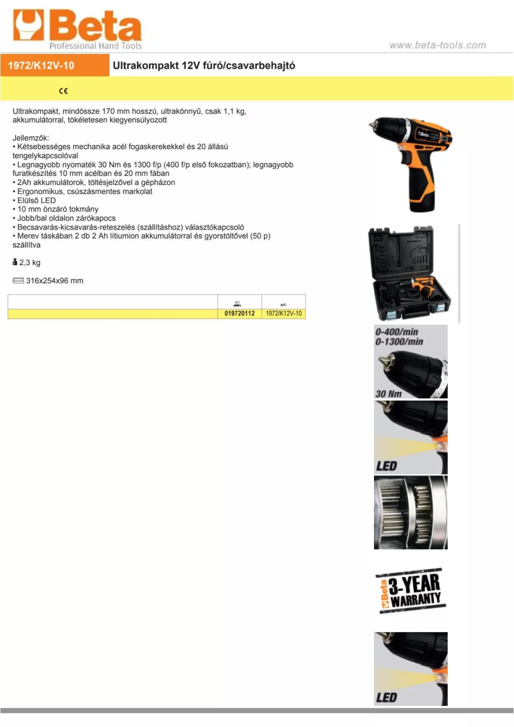 Beta 1972/K12V-10 Ultrakompakt 12V fúró/csavarbehajtó