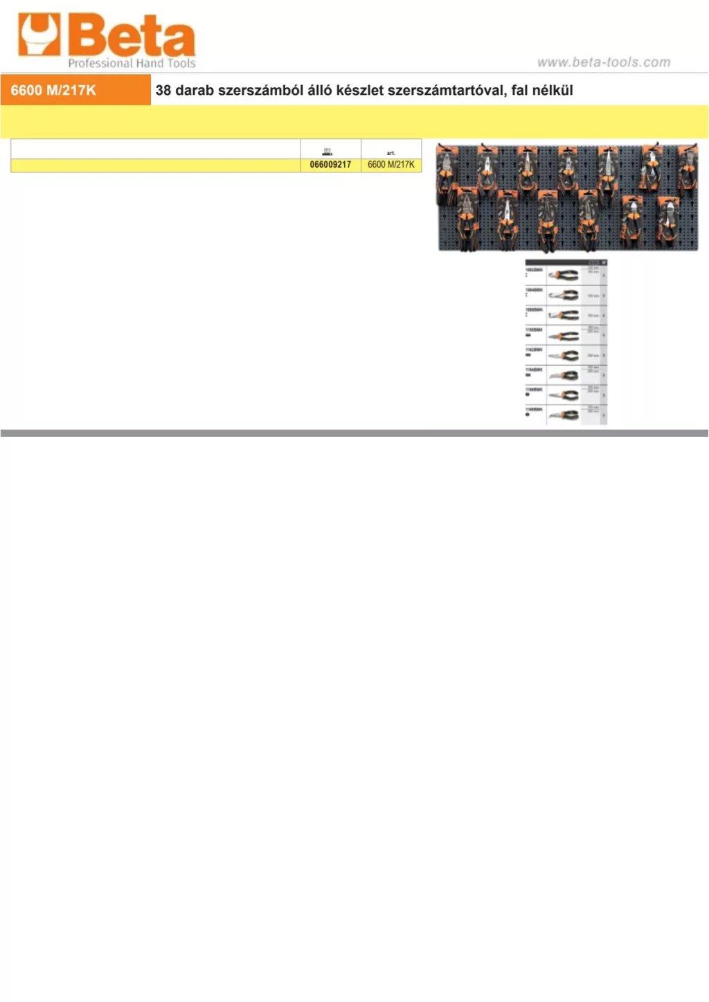 Beta 6600 M/217K 38 darab szerszámból álló készlet szerszámtartóval, fal nélkül