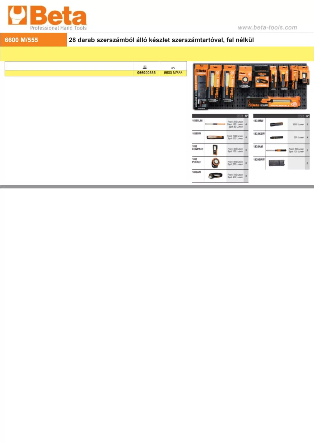 Beta 6600 M/555 28 darab szerszámból álló készlet szerszámtartóval, fal nélkül