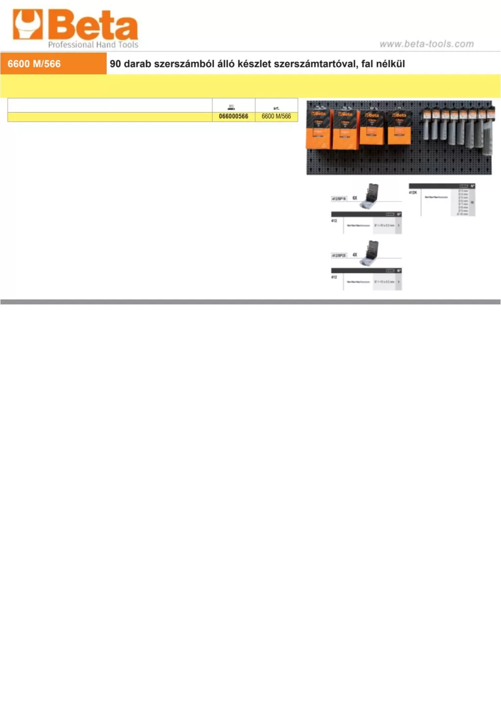 Beta 6600 M/566 90 darab szerszámból álló készlet szerszámtartóval, fal nélkül