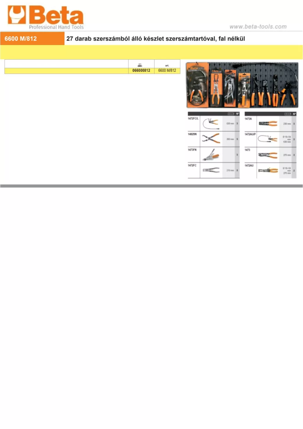 Beta 6600 M/812 27 darab szerszámból álló készlet szerszámtartóval, fal nélkül