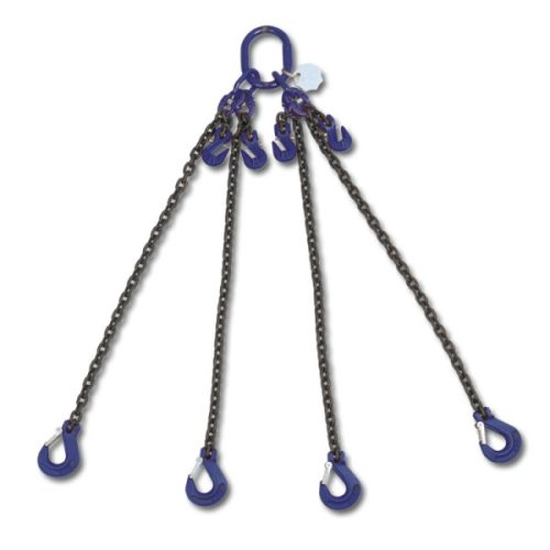 Rögzítő emelőheveder, 4 karos, közelítő horgokkal és kiakadásgátlóval, 10. biztonsági fok