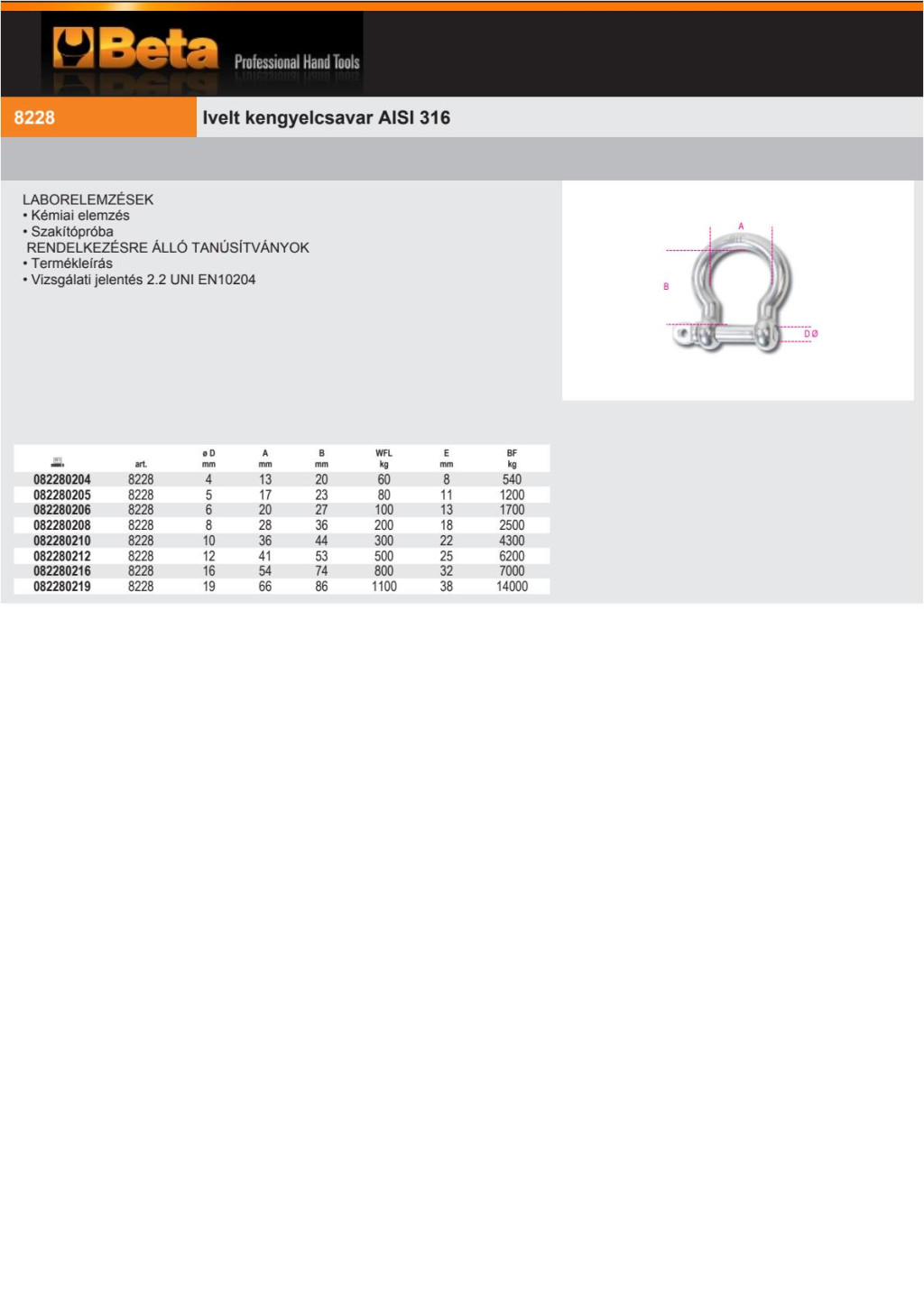 Beta 8228 Ivelt kengyelcsavar AISI 316 4mm