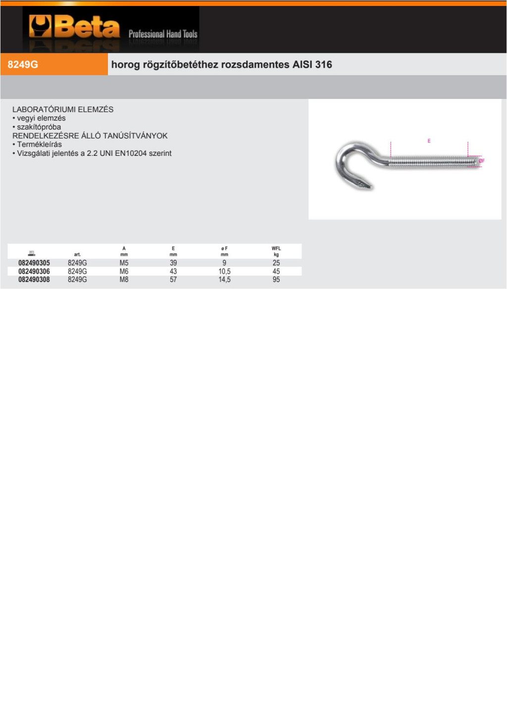 Beta 8249G Horog rögzítőbetéthez rozsdamentes AISI 316 M5