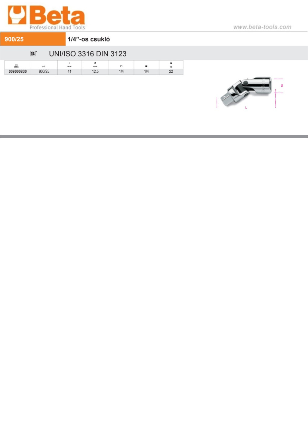 Beta 900/25 1/4”-os csukló