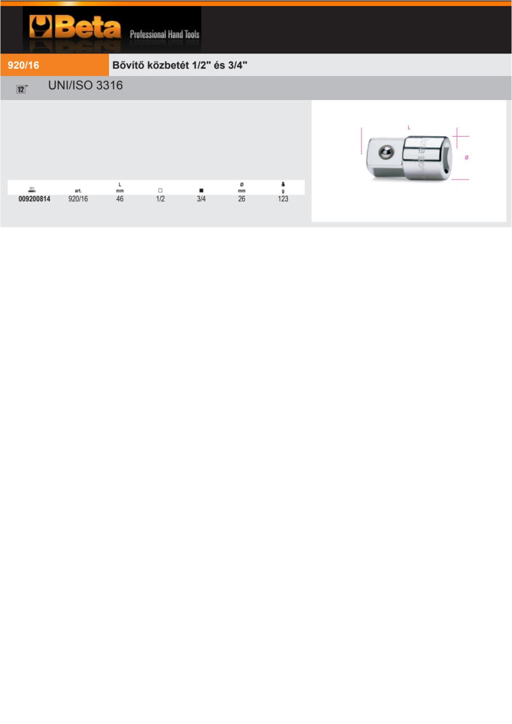 Beta 920/16 bővítő közbetét B1/2" és K3/4"