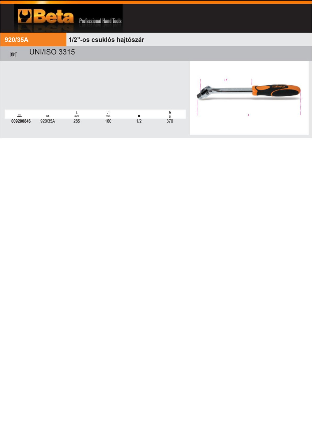 Beta 920/35A 1/2”-os csuklós hajtószár, krómozott 285mm