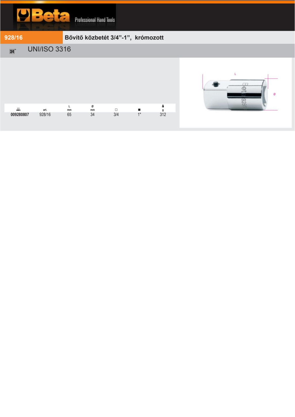 Beta 928/16 bővítő közbetét B3/4”-K1”, krómozott