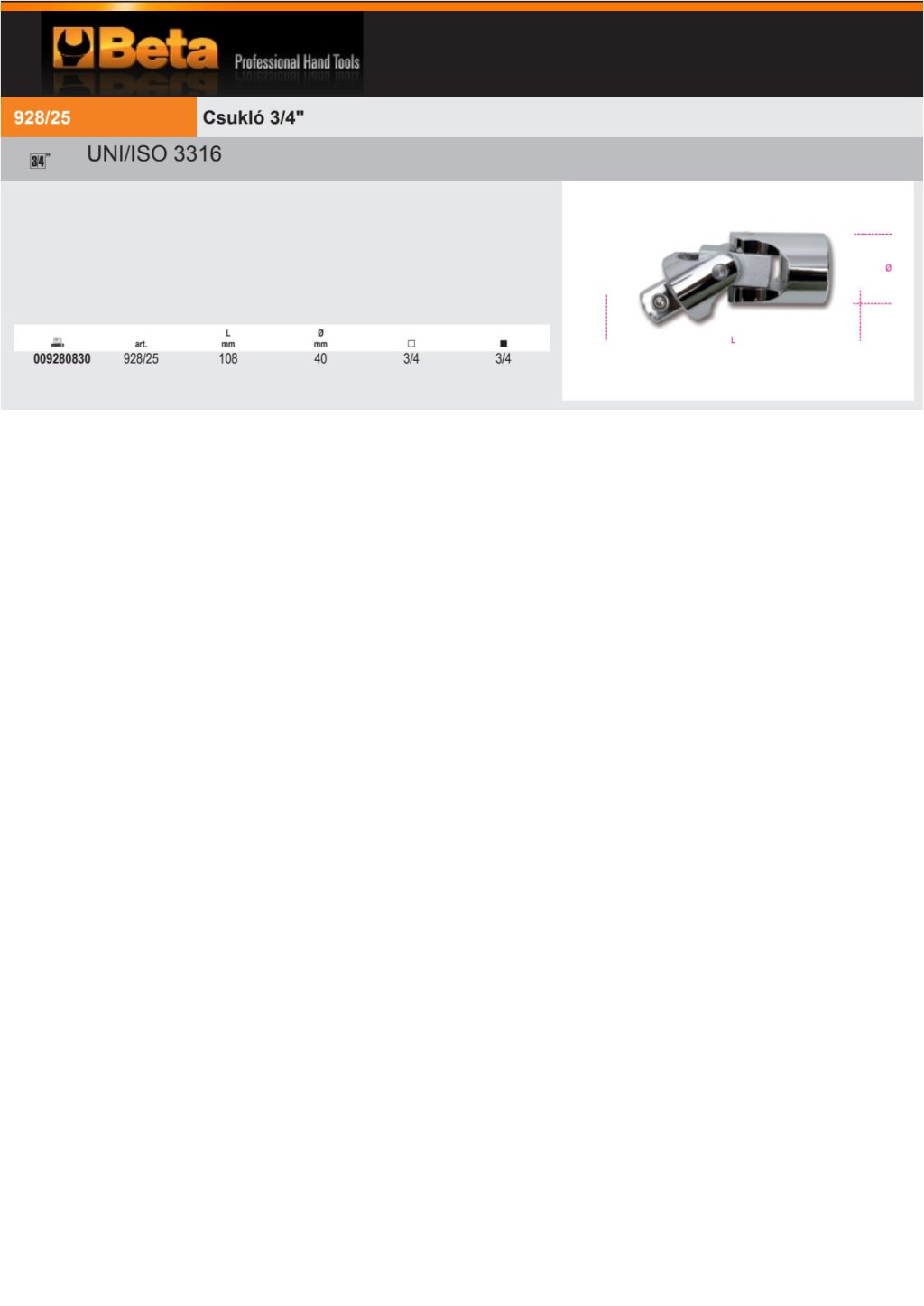 Beta 928/25 Csukló 3/4"-os