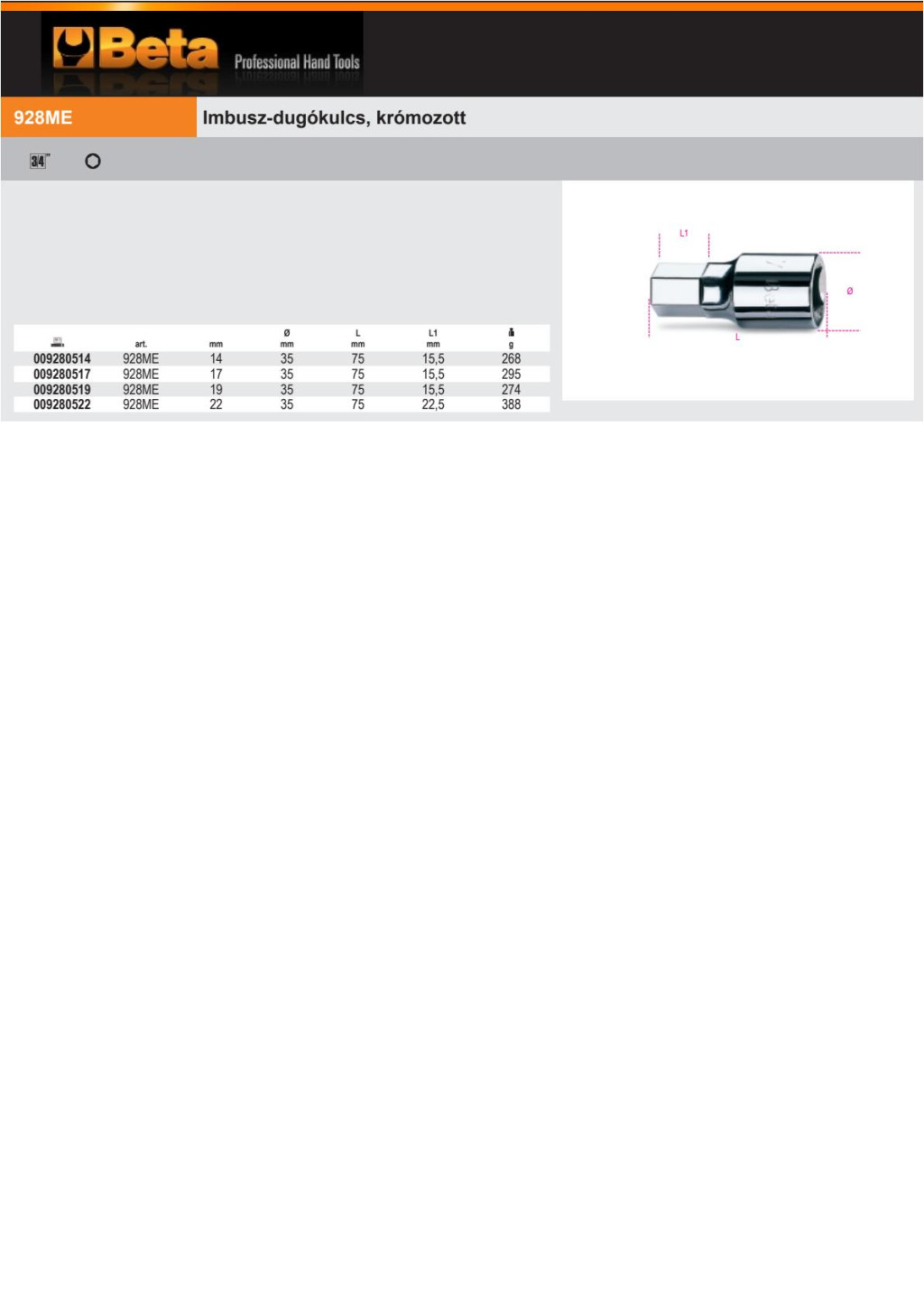 Beta 928ME 3/4" Imbusz-Dugókulcs, krómozott 22mm