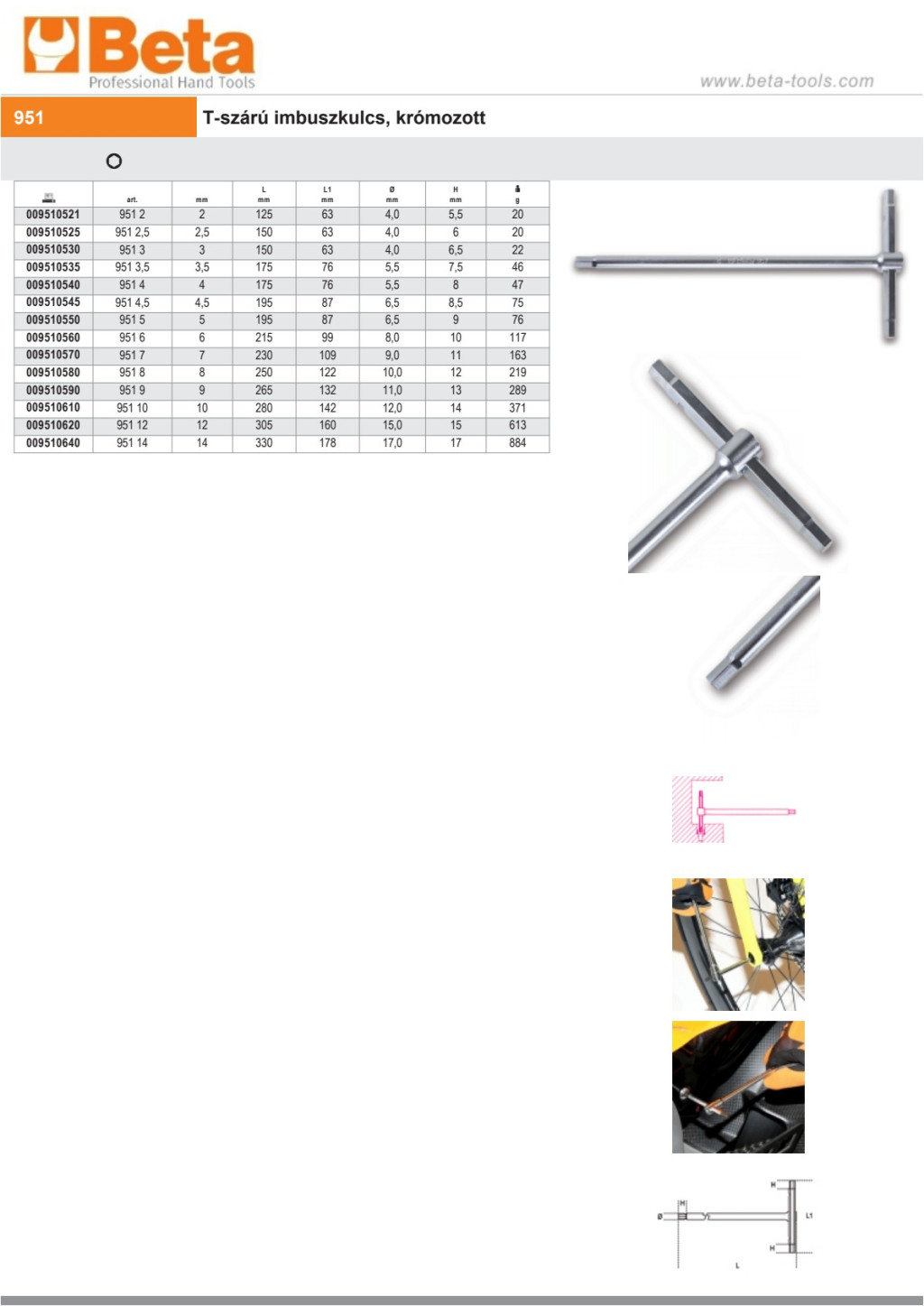 Beta 951 3 T-szárú imbuszkulcs, krómozott 3mm