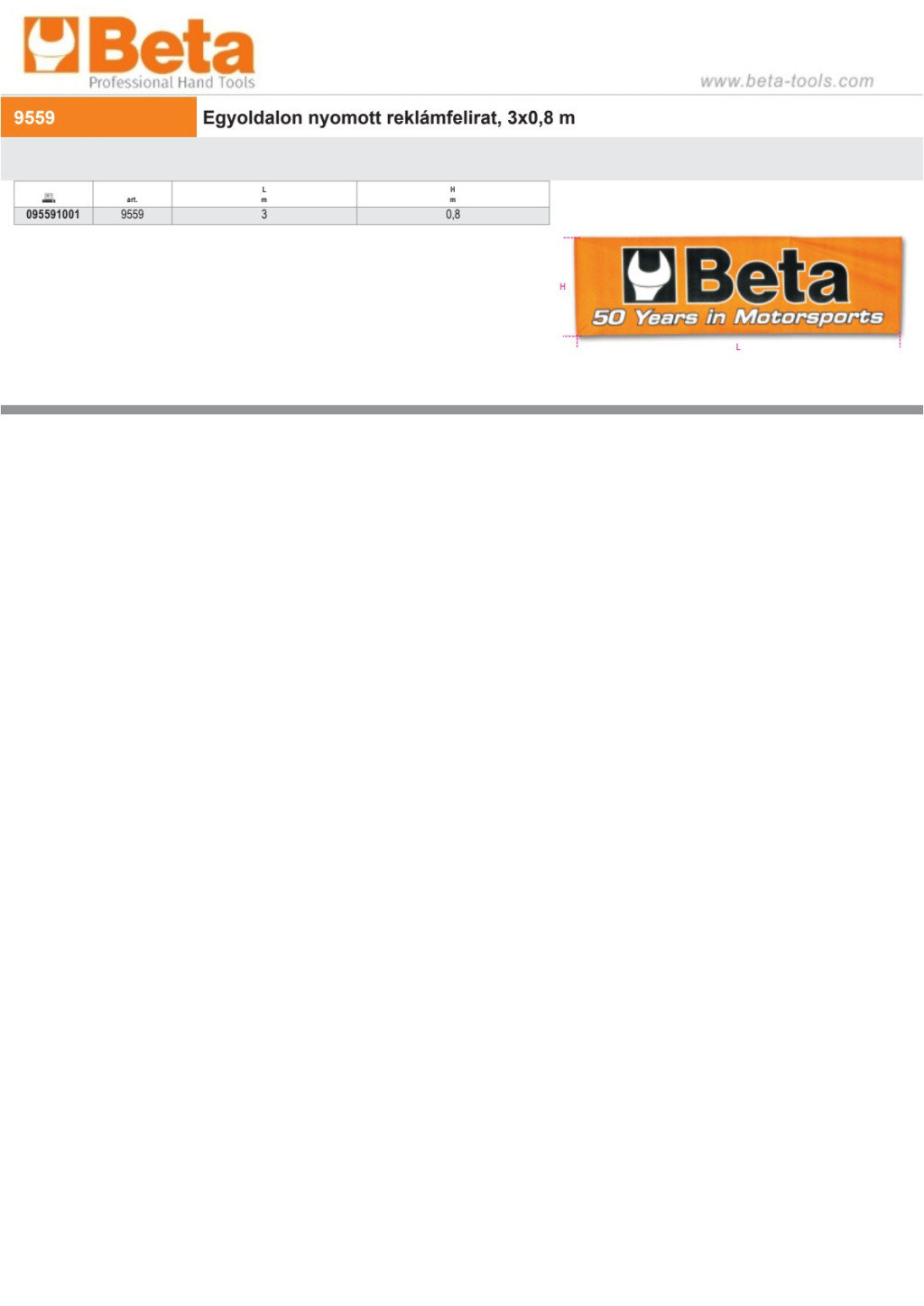 Beta 9559/30MT Egyoldalon nyomott reklámfelirat, 3x0,8 m