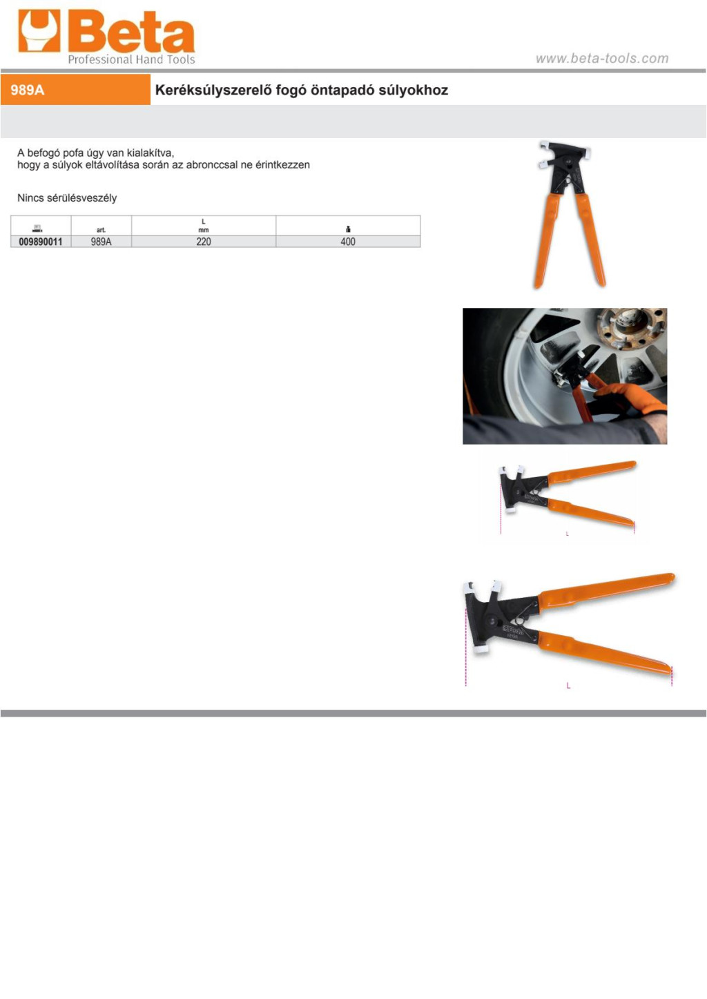 Beta 989A Keréksúlyszerelő fogó öntapadó súlyokhoz