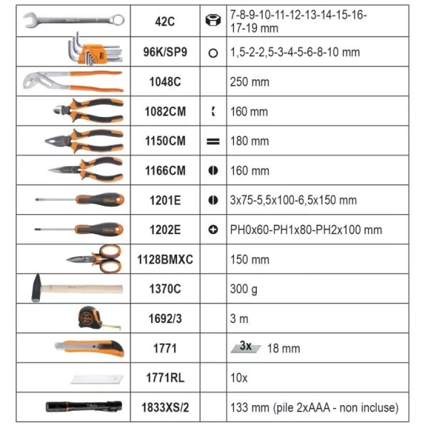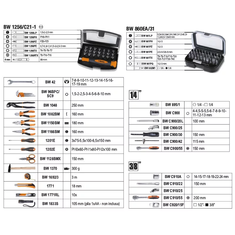 Beta BW 2054E/E-128 Worker 128 darabos szerszámkészlettáskában, általánoskarbantartáshoz