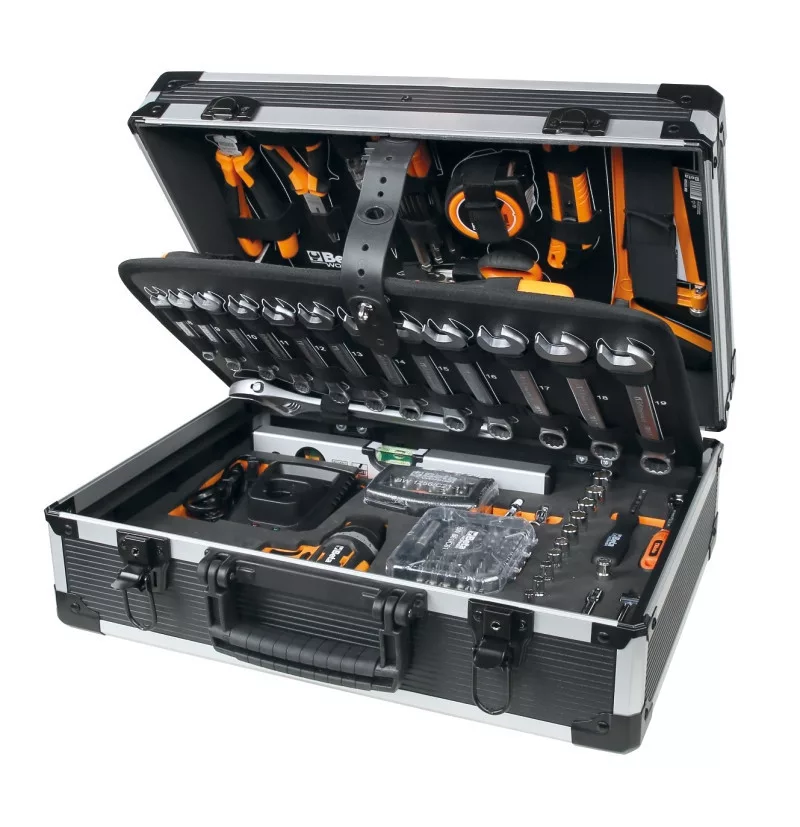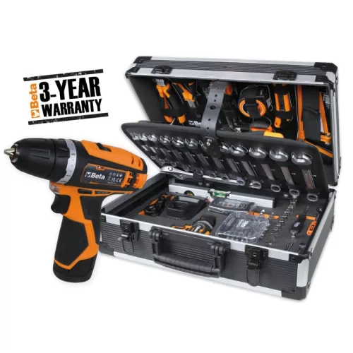 Beta BW 2056E 12V 147 darabos szerszámkészlet és 12V fúró táskában, általános karbantartáshoz