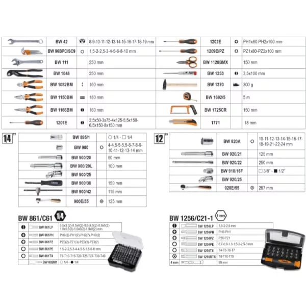 Beta BW 2056E/E-20 Worker 163 darabos szerszámkészlettáskában, általánoskarbantartáshoz