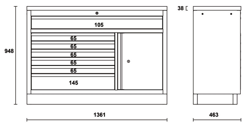 7 fiókos rögzített modul a C45PRO műhelyberendezés összeállításhoz