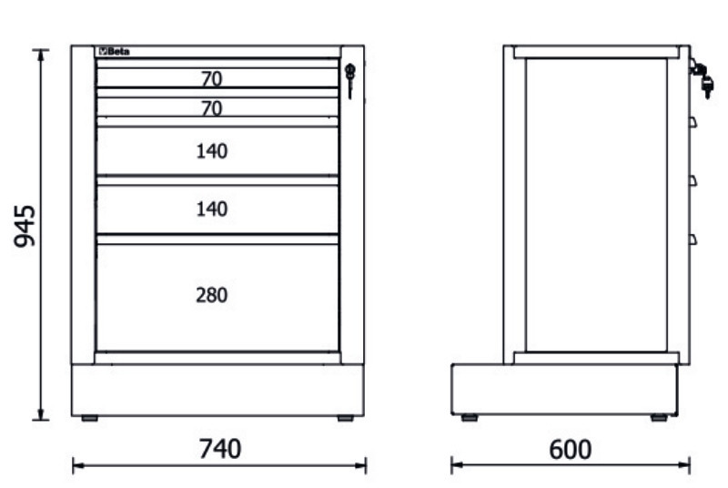 Beta RSC50 M5 5 fiókos, rögzített modul az RSC50 műhelyberendezés összeállításhoz