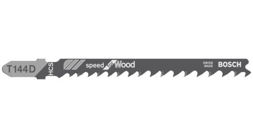 Puhafa gyors vágása - A T 144 D Speed for Wood szúrófűrészlap fa gyors, egyenes vágására alkalmas. Élesre köszörült váltófogazása gyors vágást eredményez. A magas széntartalmú acélból készült fűrészlap puhafa és nem abrazív faipari anyagok vágásához használható. Emellett a fűrészlap ritka (4–5,2 mm), progresszív fogosztása lehetővé teszi különböző, 5–50 mm vastagságú faanyagok vágását. T-Shank befogószáras rögzítő rendszerrel rendelkező szúrófűrészekhez használható. Minden T befogószárú szúrófűrészhez használható