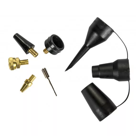 Fúvóka készlet pneumatikus tömlőfúvatókhoz. A készlethez hat különböző kialakítású szelep tartozik. Használatával lehetővé válik a kerékpár, labda és más szelepes sporteszköz egyszerű és gyors felfúvatása. ,