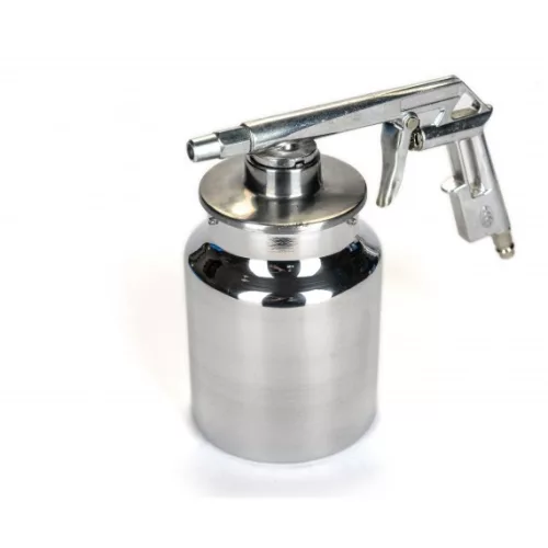 Alsótartályos homokszóró pisztoly kisebb felületek homokszórására, pl. korrózió eltávolítására alkalmas. A szórópisztoly 6 bar üzemi nyomáson működik, a fogantyú nyelébe szerelt gyorscsatlakozó ellendarab segítségével egy mozdulattal csatlakoztatható a sűrített levegős rendszerhez. ,