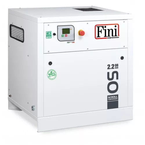 Fő jellemzők:Energia megtakarításAz IE3 Prémium Efficiency elektromotorok használatának köszönhetően az OS skála kiválóan kombinálja a maximális megbízhatóságot és az optimális energiahatékonyságot.Nagyon csendesA Fini OS termékcsalád rendkívül csendes és gyakorlatilag bármilyen környezetben beüzemelhető. Biztosítja a kezelő kényelmét és biztonságát, miközben minimális zajterheléssel üzemel.Kiváló minőségű sűrített levegőA légtartályra szerelt modellek opcionálisan hűtveszárítóval is rendelhetők, ezzel biztosítva a lehető legkiválóbb minőségű sűrített levegőt.Rendkívül egyszerű karbantartásA gép belső kialakításának köszönhetően rendkívül gyorsan és egyszerűen elvégezhetők a rutin karbantartások.FlexibilitásA különböző konfigurációknak köszönhetően a rendszer minden igényt kielégít.Robosztus kivitelAz OS olajmentes scroll kompresszorok kiváló minőségű alkatrészekből készülnek. A nagy figyelemmel történő összeszerelésnek és tesztelésnek köszönhető a kitűnő teljesítmény, rendkívüli megbízhatóság és csendes működés.Kompakt designA rendkívül kompakt kialakításuknak köszönhetően a kompresszorok bármely munkaterületen egyszerűen telepíthetők.Rendelhető kivitel:- alaplapra szerelt kivitel- kompresszor + légtartály (270 vagy 500 literes)- kompresszor + hűtveszárító + légtartály (270 vagy 500 literes)SSC (SingleScrollController) vezérlőegység Az OS termékcsalád integrált vezérlői garantálják a kompresszorok működésének optimális felügyeletét és szabályozását. Lehetővé teszik a komplett sűrített levegős állomás programozását a maximális hatékonyság és biztonság érdekében. Az SSC vezérlők single scroll 2,2-7,5 kW modellekbe kerülnek beszerelésre.Opcionálisan rendelhető az EASY X4 vezérlőegységAz Easy X4 egy hetente programozható vezérlő, amely állandó fordulatszámon lehetővé teszi akár négy kompresszor konfigurálását a tényleges levegőigény alapján.