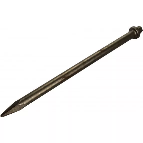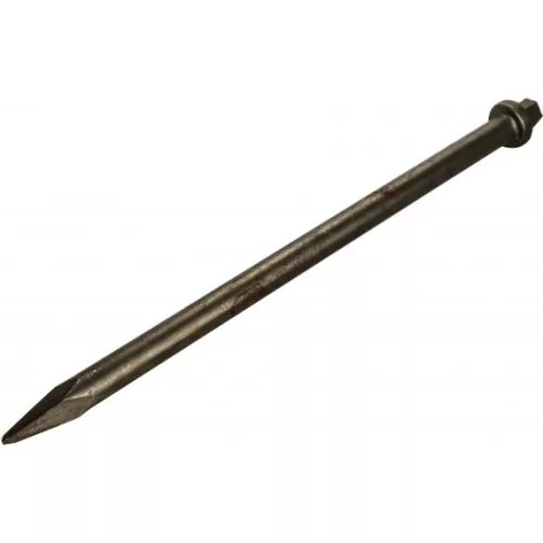 Negyszögletű hegyes vésőszár pneumatikus vésőgéphez. Hatszögletű befogás, 10,5 mm átmérő. Vésőszár hossza: 215 mm.
