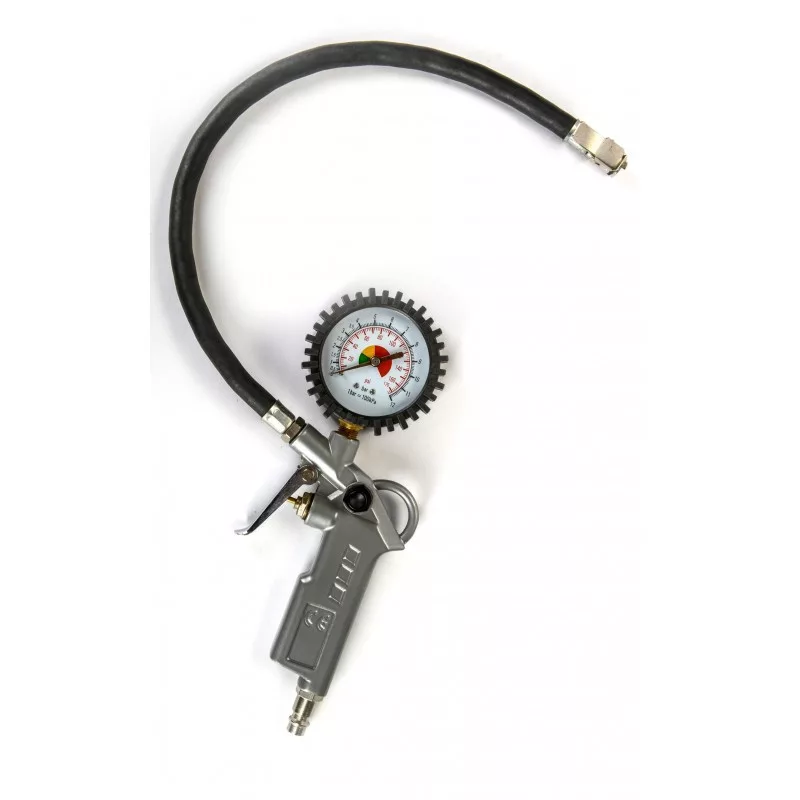 Pneumatikus tömlőfúvató pisztoly, elsősorban személygépkocsi abroncsok felfúvatásához ajánlott. A kéziszerszám töltő és leeresztő funkcióval rendelkezik. A manométert gumiburkolat védi a sérülésektől.